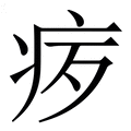 , 笔画为9画, 部首为疒, unicode编码2AF68, 汉语字典解释:越南汉字读音ngặt严重(指病)。