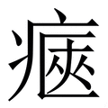 , 拼音为qiè, 笔画为12画, 部首为疒, unicode编码24DFE, 汉语字典解释:,同【㾜】。