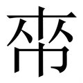 , 拼音为yì, 笔画为9画, 部首为巾, unicode编码220AF, 汉语字典解释:同【亦】。