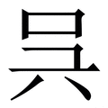 , 拼音为wú, 笔画为7画, 部首为口, unicode编码20BF5, 汉语字典解释:同【吴】。