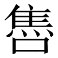 , 拼音为shòu, 笔画为14画, 部首为隹, unicode编码28FC8, 汉语字典解释:同【售】。