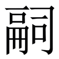 , 拼音为sì, 笔画为14画, 部首为口, unicode编码20EF8, 汉语字典解释:同【嗣】。