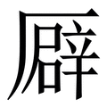 , 拼音为pì, 笔画为15画, 部首为厂, unicode编码20AAE, 汉语字典解释:,同【廦】。