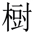 , 拼音为shù, 笔画为13画, 部首为木, unicode编码23552, 汉语字典解释:同【樹】。
