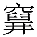 䞼, 拼音为cuàn, 笔画为16画, 部首为走, unicode编码47BC, 汉语字典解释:1、 同“竄”。《字彙補•走部》:“䞼,與竄同。” ,同【窜】。