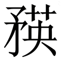 , 拼音为yīng, 笔画为13画, 部首为矛, unicode编码2537C, 汉语字典解释:用羽毛装饰矛