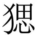 , 拼音为xǐ, 笔画为12画, 部首为犭, unicode编码247E7, 汉语字典解释:[]惊恐、害怕状