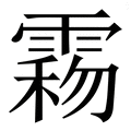 , 拼音为mái, 笔画为26画, 部首为雨, unicode编码291C1, 汉语字典解释:同【霾】。
