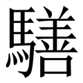 , 笔画为12画, 部首为马, unicode编码2CD03, 汉语字典解释:1、 “騞”的类推简化字。 ,【騞】的类推简化字。