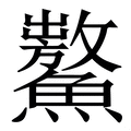, 拼音为áo, 笔画为25画, 部首为黽, unicode编码2A4FE, 汉语字典解释:1、 同“鼇”。《龍龕手鑑•黽部》:“,海中大鼈也。”《篇海類編•鱗介類•黽部》:“,鼇本字。” ,同【鼇】。