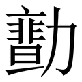 勴, 拼音为lǜ, 笔画为17画, 部首为力, unicode编码52F4, 汉语字典解释:1、 赞助,勉励。