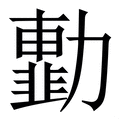 , 拼音为lǜ, 笔画为17画, 部首为力, unicode编码208BB, 汉语字典解释:同【勴】。