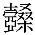 , 拼音为sǎng, 笔画为19画, 部首为木, unicode编码23799, 汉语字典解释:鼓框木。