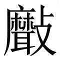 , 笔画为15画, 部首为麻, unicode编码2A398, 汉语字典解释:同【】。