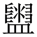 , 笔画为22画, 部首为皿, unicode编码250D6, 汉语字典解释:同【】。