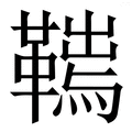 , 拼音为xù, 笔画为20画, 部首为革, unicode编码2932E, 汉语字典解释:鞋