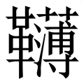 , 拼音为bó, 笔画为25画, 部首为革, unicode编码2937F, 汉语字典解释:1、 [靯~]见“靯”。 ,1、 同“”(䪙)