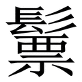 , 拼音为piào,piǎo,piē, 笔画为21画, 部首为髟, unicode编码29BB3, 汉语字典解释:,piao4头发乱,头发斑白