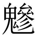 , 拼音为yòu, 笔画为20画, 部首为鬼, unicode编码29D11, 汉语字典解释:①神在山中。②鬼名