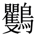 , 拼音为jué, 笔画为31画, 部首为鳥, unicode编码2A234, 汉语字典解释:传说中的一种怪鸟,羽毛白色,像鸡,三头三脚