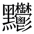 , 拼音为yù, 笔画为41画, 部首为黑, unicode编码2A4CA, 汉语字典解释:黑色