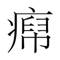 , 笔画为15画, 部首为疒, unicode编码2C3F9, 汉语字典解释:隶定古文金文隶定字。人名用字。字見《殷周金文集成引得》701頁。金文原形字 出自《殷周金文集成》第4603器銘文中。