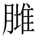 , 笔画为15画, 部首为月, unicode编码267FF, 汉语字典解释:越南汉字đùi大腿。读音dồi火腿。