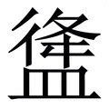 , 拼音为jù, 笔画为14画, 部首为皿, unicode编码25083, 汉语字典解释:同【㯯】。[盨]顶在头上用以盛物的器具