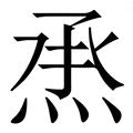 , 笔画为11画, 部首为火, unicode编码2424B, 汉语字典解释:①俗【丞】。《廣碑別字》引《隋馮妻叱李綱子墓誌》。②俗【蒸】。《可洪音義》:“民:上之反。衆也。”