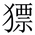 , 拼音为piào,biāo, 笔画为14画, 部首为犭, unicode编码24851, 汉语字典解释:同【僄】。轻快,敏捷