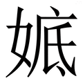 , 拼音为jī, 笔画为4画, 部首为女, unicode编码216A6, 汉语字典解释:拟定义同【屄】。会意字,意为女性性器官。潮汕俚语,骂人语。位于《信息交换用汉字编码字符集 第八辅助集》第31区,第57字,1、 〈喃〉妓女。 2、 其它字义 3、 4、 jī ㄐㄧ 5、 〈方〉粗俗用语,指女阴。廣東方言。 ,越南汉字同【】。