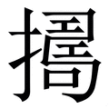 , 笔画为16画, 部首为扌, unicode编码22D88, 汉语字典解释:1、 同“擣”。《説文•手部》:“,手椎也。一曰築也。从手,聲。”《正字通•手部》:“,擣本字。”