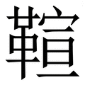 , 拼音为xuàn,yùn, 笔画为18画, 部首为革, unicode编码292E2, 汉语字典解释:同【楦】。yun4同【韗】。