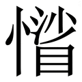 , 笔画为15画, 部首为忄, unicode编码2287E, 汉语字典解释:同【】。