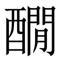, 拼音为jiǎn, 笔画为19画, 部首为酉, unicode编码288C7, 汉语字典解释:,同【碱】。