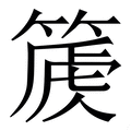 箎, 拼音为hŭ,chí, 笔画为14画, 部首为竹, unicode编码7B8E, 汉语字典解释:1、 竹名。 ,同【篪】。,1、 同“篪”。