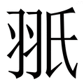 , 拼音为chì, 笔画为10画, 部首为羽, unicode编码2640A, 汉语字典解释:同【翅】。
