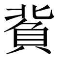 , 拼音为bèi, 笔画为14画, 部首为貝, unicode编码27D99, 汉语字典解释:1、 同“背”。违背。《集韻•隊韻》:“背,違也。亦作。” 2、 姓。《字彙補•貝部》:“,姓。”