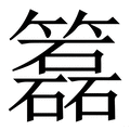 䒹, 拼音为lèi, 笔画为9画, 部首为艹, unicode编码44B9, 汉语字典解释:,lei4同【莱】。音泪。①耕多草。②果实下垂的样子。,越南汉字同【】。