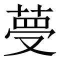, 拼音为mèng, 笔画为12画, 部首为艹, unicode编码26D0B, 汉语字典解释:同【梦】。qian2同【虔】。