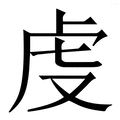 , 拼音为qián, 笔画为8画, 部首为虍, unicode编码2719B, 汉语字典解释:同【虔】。