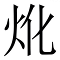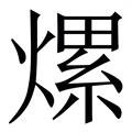 , 拼音为lèi, 笔画为15画, 部首为火, unicode编码24376, 汉语字典解释:,越南汉字同【】。读音loà发光的读音loè闪烁的灯光。读音nhoà涂抹。读音nhoè模糊了。