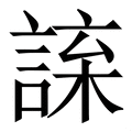 , 拼音为dié, 笔画为15画, 部首为言, unicode编码27A5C, 汉语字典解释:同【谍】。