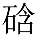 , 拼音为hán, 笔画为12画, 部首为石, unicode编码254C2, 汉语字典解释:同【谽】。[砑],山深谷空貌。也做“谽谺”。多石的低洼地。位于《信息交换用汉字编码字符集 第八辅助集》第36区,第87字
