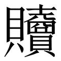 , 拼音为shú, 笔画为26画, 部首为貝, unicode编码27E4E, 汉语字典解释:同【赎】。