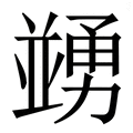 , 拼音为yǒng, 笔画为16画, 部首为足, unicode编码280B9, 汉语字典解释:同【踴】。