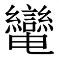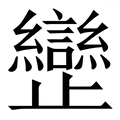 , 笔画为19画, 部首为糹, unicode编码26195, 汉语字典解释:1、 同“轡”。《廣韻•至韻》:“轡,馬轡。《説文》作。”