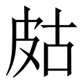 , 拼音为gū, 笔画为15画, 部首为辛, unicode编码2841E, 汉语字典解释:同【嫴】。