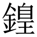 鍠, 拼音为huáng, 笔画为17画, 部首为釒, unicode编码9360, 汉语字典解释:1、 象聲詞。《爾雅•釋訓》:“鍠鍠,樂也。”《説文•金部》:“鍠,鐘聲也。《詩》曰:‘鐘鼓鍠鍠。’”《廣雅•釋詁四》:“鍠,聲也。” 2、 一種似鉞的古兵器。《集韻•唐韻》:“鍠,兵器也。” ,【锽】的繁体。