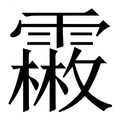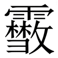 , 拼音为xiàn, 笔画为16画, 部首为雨, unicode编码290DD, 汉语字典解释:同【霰】。,古壮字读音mwi霜。